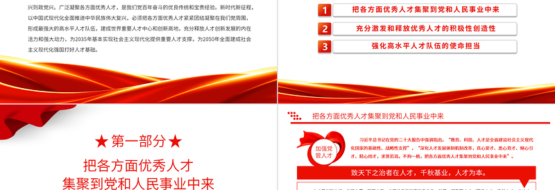 加強(qiáng)黨管人才PPT紅色簡(jiǎn)潔人才強(qiáng)則國(guó)家強(qiáng)人才興則政黨興強(qiáng)化現(xiàn)代化建設(shè)人才支撐黨課課件 Array