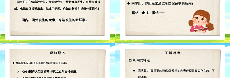 同學(xué)們,你們經(jīng)常通過哪些途徑收集新聞?網(wǎng)絡(luò)、電視、報(bào)紙……課前導(dǎo)入