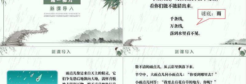 雨點(diǎn)兒像是來(lái)自天上的精靈,它們爭(zhēng)先恐后地飄向大地,滿懷喜悅地去滋潤(rùn)萬(wàn)物,悄無(wú)聲息地執(zhí)行著自己神圣的使命。讓我們走進(jìn)課文,去聽(tīng)聽(tīng)大雨點(diǎn)兒和小雨點(diǎn)兒的對(duì)話吧!