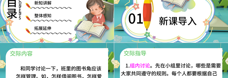 交際內(nèi)容 和同學(xué)討論一下,班里的圖書角應(yīng)該怎樣管理。如,怎樣借閱圖書,怎樣愛護(hù)圖書,怎樣讓大家都能借到書。討論后制定圖書借閱公約。