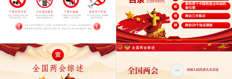 紅色 黨政風(fēng)大氣聚焦2021第十三屆人大政協(xié)會(huì)議奮進(jìn)新征程PPT