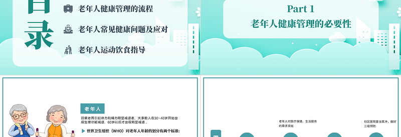 老年人健康管理的必要性老年人健康管理的流程老年人常見健康問題及應(yīng)對老年人運(yùn)動(dòng)飲食指導(dǎo)目錄