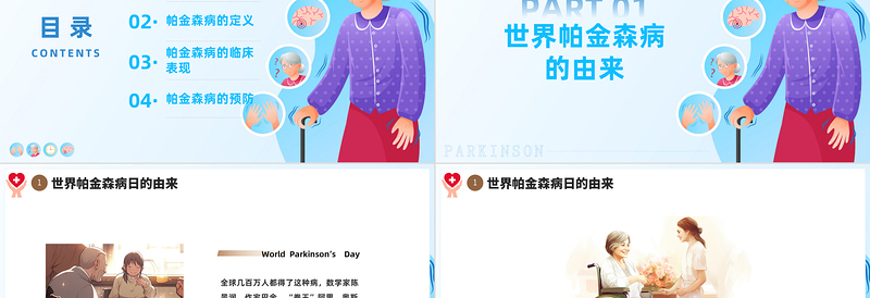 世界帕金森日PPT插畫風(fēng)世界帕金森日關(guān)愛帕金森患者活動課件
