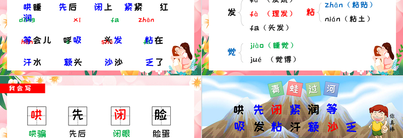 哄睡 先后 閉上 緊緊 紅潤(rùn) 等會(huì)兒 呼吸 頭發(fā) 粘在 汗水 額頭 沙沙 乏了hǒng xiān bì jǐn děng xī fa zhān hàn é shā fá rùn 易讀錯(cuò)字