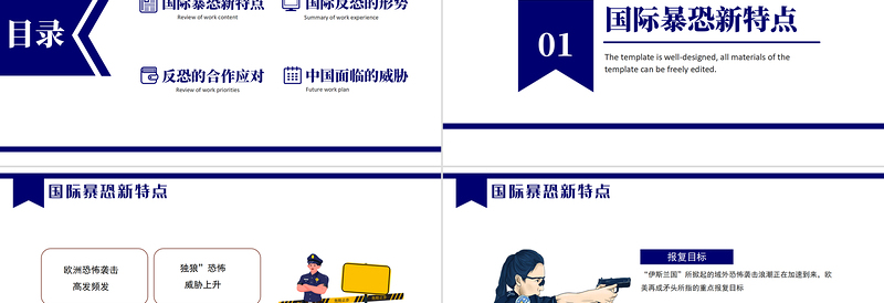 01國際暴恐新特點(diǎn)The template is well-designed, all materials of the template can be freely edited.