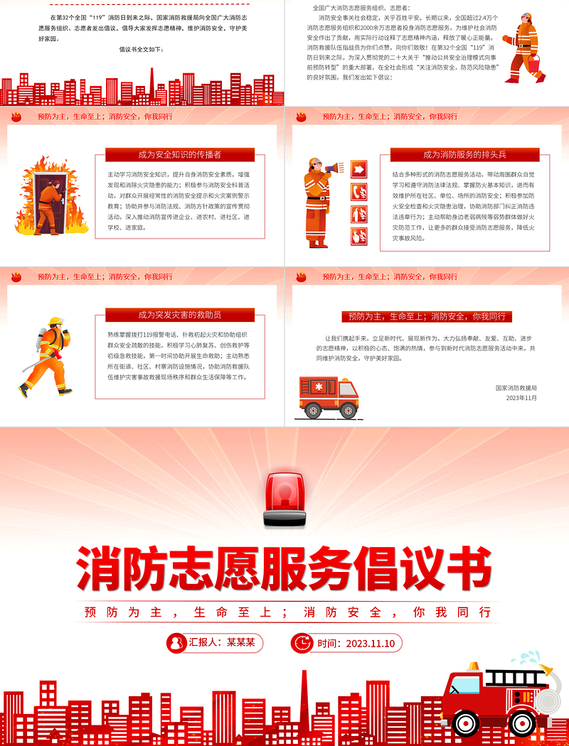 消防志愿服務(wù)PPT精美時(shí)尚關(guān)注消防安全防范風(fēng)險(xiǎn)隱患消防志愿精神宣傳課件 Array