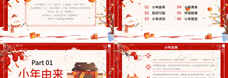 龍年小年吉祥PPT精美紅色臘月二十三小年課件模板 Array