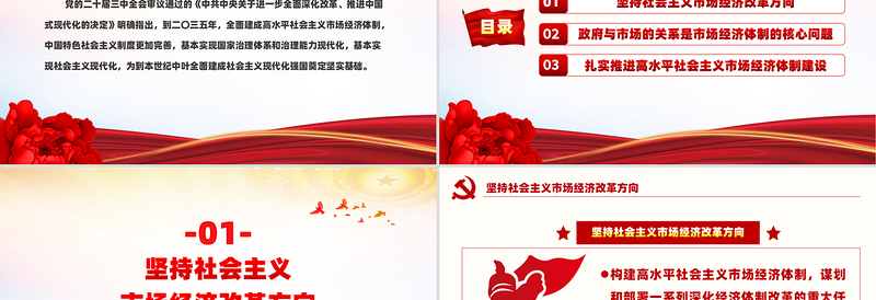紅色大氣著力建成高水平社會(huì)主義市場(chǎng)經(jīng)濟(jì)PPT課件模板 Array