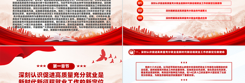 實施就業(yè)優(yōu)先戰(zhàn)略促進高質(zhì)量充分就業(yè)PPT紅色黨建風(fēng)黨員干部學(xué)習(xí)教育黨課 Array