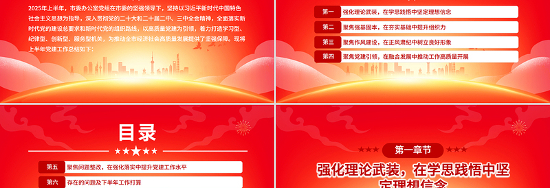 工圖網(wǎng)提供某市委辦公室黨組2025年上半年黨建工作總結(jié)PPT模板下載供會(huì)員免費(fèi)下載。更多精彩黨課PPT素材,盡在工圖網(wǎng)。