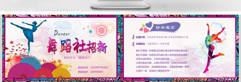 大學(xué)舞蹈社團(tuán)納新PPT模板1