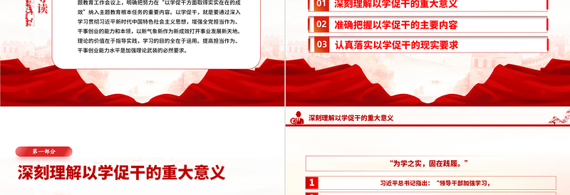 以學促干擔當有為創(chuàng)偉業(yè)PPT紅色精美扎實開展主題教育提高解決實際問題的水平微黨課