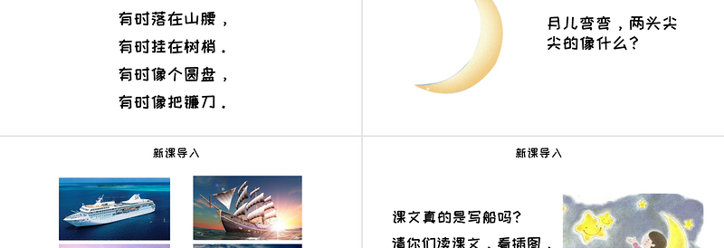 > 教學(xué)課件 > 人教版小學(xué)一年級(jí)語文上冊第三章課文(一)第二課:小小的船(含配套教案)課件PPT.PPTX 【圖片、文字、動(dòng)畫均可編輯】