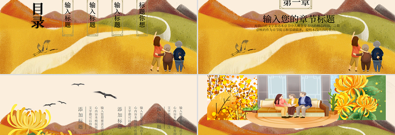 山水,溫馨,節(jié)日,重陽(yáng)節(jié),慶典,敬老,PPT模板 Array