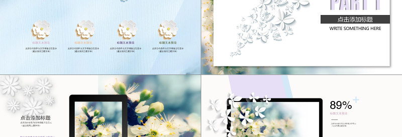 淡雅小清新微立體花瓣述職報告PPT模板 Array