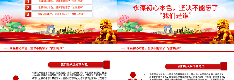 永葆初心本色牢記“三個(gè)不忘”PPT紅色精美黨員思想教育黨課 Array