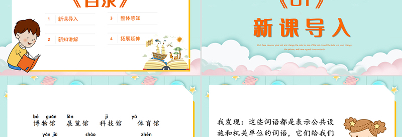 《01》新課導(dǎo)入Click here to enter your text and change the color or size of the text. Insert the data text icon, change the picture, and have a good time.contents