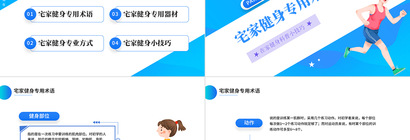 2022運(yùn)動起來PPT藍(lán)色簡約風(fēng)宅家健身科普小技巧課件模板 Array