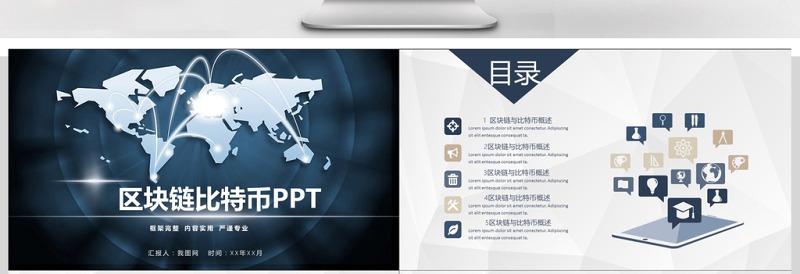 大氣商務(wù)區(qū)塊鏈比特幣PPT模板