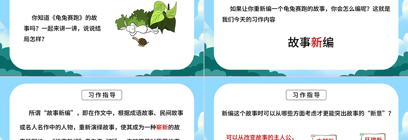 如果讓你重新編一個(gè)龜兔賽跑的故事,你會(huì)怎么編呢?這就是我們今天的習(xí)作內(nèi)容故事新編習(xí)作內(nèi)容