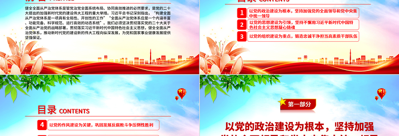 健全全面從嚴(yán)治黨體系PPT紅色大氣推動新時(shí)代黨的建設(shè)新的偉大工程向縱深發(fā)展黨建課件 Array