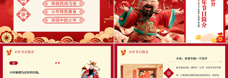 祭灶PPT紅色喜慶迎小年賀小年介紹主題班會模板 Array