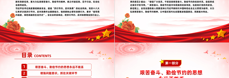 紅色大氣大力弘揚艱苦奮斗勤儉節(jié)約精神黨員干部思想教育PPT模板