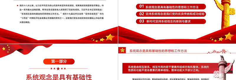 把握系統(tǒng)觀念的科學(xué)內(nèi)涵和實(shí)踐要求PPT紅色大氣風(fēng)黨員干部學(xué)習(xí)教育專題黨課課件模板 Array