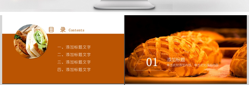 健康飲食美味可口面包美食早餐PPT模板 Array