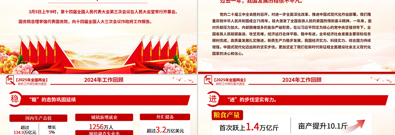 2025政府工作報告要點速覽PPT紅色大氣學(xué)習(xí)全國兩會精神黨課課件