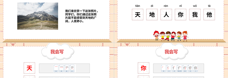 2022天地人PPT簡潔卡通識字第1課小學(xué)一年級語文上冊人教版教學(xué)課件 Array