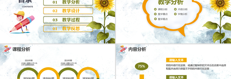 小清新簡約老師說課教育培訓(xùn)通用PPT模板 Array