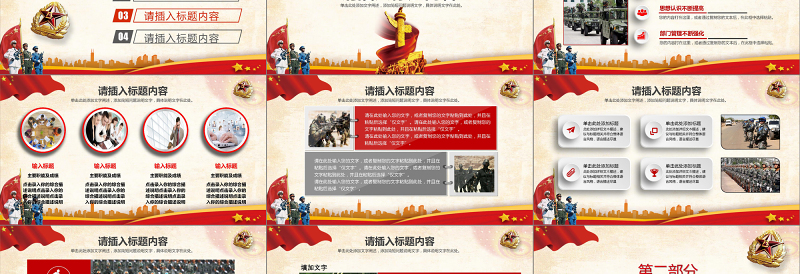 黨政軍大氣模板紅色政工模板政府PPT模板 Array