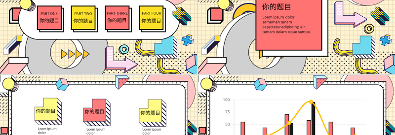 孟菲斯 孟菲斯風(fēng)格 幾何風(fēng)格 幾何線條 PPT模板 通用PPT模板 清新 2020 創(chuàng)意 時尚 藝術(shù)風(fēng) Array