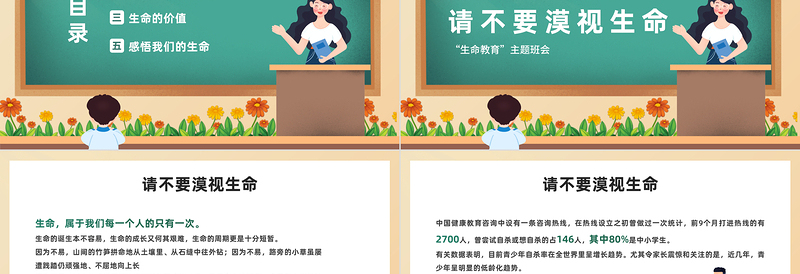 2023讓生命之花綻放光彩PPT卡通風(fēng)中小學(xué)生生命教育主題班會課件模板下載