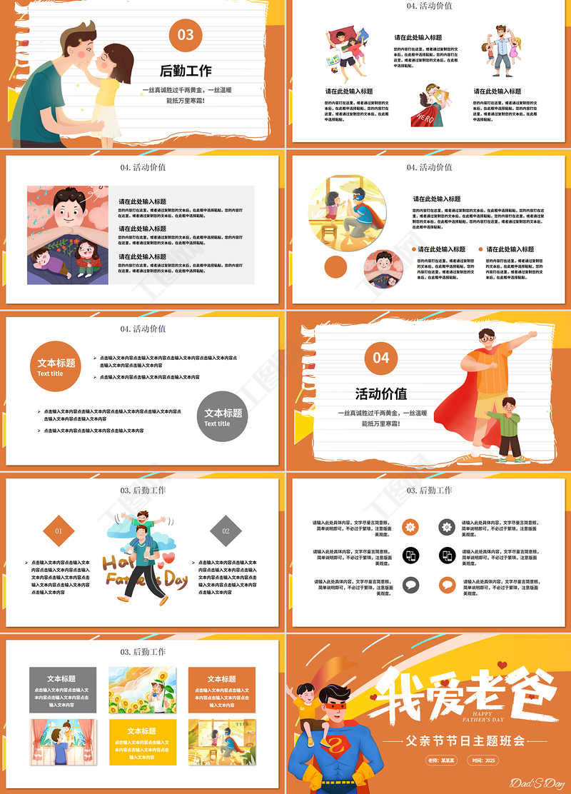 工圖網(wǎng)提供父親節(jié)節(jié)日主題班會PPT彩色童趣父愛如山課件下載供會員免費下載。更多精彩黨課PPT素材,盡在工圖網(wǎng)。