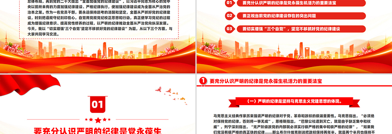 1要充分認(rèn)識(shí)嚴(yán)明的紀(jì)律是黨永葆生機(jī)活力的重要法寶黨員紀(jì)律問(wèn)題關(guān)乎黨的形象與凝聚力,也是促進(jìn)黨風(fēng)廉政建設(shè)和反腐敗斗爭(zhēng)的重要內(nèi)容。黨的十八大以來(lái),以習(xí)近平同志為核心的黨中央堅(jiān)持把紀(jì)律挺在前面,將紀(jì)律建設(shè)納入新時(shí)代黨的建設(shè)總體布局,高度重視廣大黨員、干部的紀(jì)律問(wèn)題,嚴(yán)肅查處違反黨紀(jì)國(guó)法的行為,有力維護(hù)了黨的團(tuán)結(jié)統(tǒng)一,鞏固了黨的執(zhí)政根基,充分彰顯了我們黨把偉大自我革命進(jìn)行到底的堅(jiān)定決心和堅(jiān)強(qiáng)意志。全面從嚴(yán)治黨永遠(yuǎn)在路上。黨的二十大開(kāi)啟全面建成社會(huì)主義現(xiàn)代化強(qiáng)國(guó)、實(shí)現(xiàn)第二個(gè)百年奮斗目標(biāo)的新征程,在前進(jìn)的道路上,我們黨面臨的形勢(shì)越來(lái)越復(fù)雜、應(yīng)對(duì)的挑戰(zhàn)越來(lái)越頻繁、肩負(fù)的任務(wù)越來(lái)越艱巨,更加迫切需要加強(qiáng)黨的紀(jì)律建設(shè)。黨的十八大以來(lái),習(xí)近平總書(shū)記反復(fù)強(qiáng)調(diào)黨的紀(jì)律的重要性,指出“黨要管黨、從嚴(yán)治黨,靠什么管,憑什么治?就要靠嚴(yán)明紀(jì)律”,“紀(jì)律是管黨治黨的‘戒尺’,也是黨員、干部約束自身行為的標(biāo)準(zhǔn)和遵循”,“各級(jí)黨組織要把嚴(yán)守紀(jì)律、嚴(yán)明規(guī)矩放到重要位置來(lái)抓,努力在全黨營(yíng)造守紀(jì)律、講規(guī)矩的氛圍”,這就為開(kāi)展黨紀(jì)學(xué)習(xí)教育指明了目標(biāo)方向、提供了重要遵循。