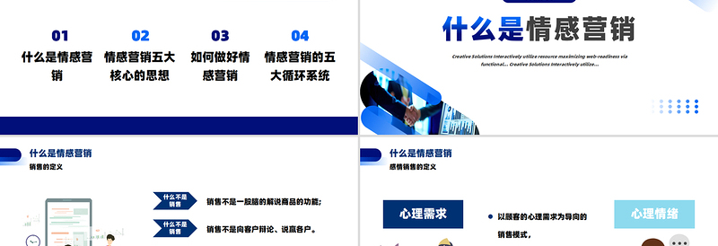 情感營(yíng)銷的 五大核心思想PART 02YOUR LOGOCreative Solutions Interactively utilize resource maximizing web-readiness via functional... Creative Solutions Interactively utilize…