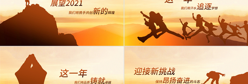 <p>回首2020 我們用汗水收獲了豐碩的果實(shí) </p><br><p>展望2021 我們將攜手共創(chuàng)新的輝煌 </p><br><p>這一年 我們用汗水追逐夢想 </p><br><p>這一年 我們用品質(zhì)鑄就卓越 </p><br><p>迎接新挑戰(zhàn) 保持昂揚(yáng)奮進(jìn)的斗志 </p><br><p>不忘初心 再創(chuàng)輝煌 </p><br><p>啟程 2021 新年工作計(jì)劃工作開展PPT2020 year-end summary work summarizes the boutique PPTAbout the summary text input or copy here2020 year-end summary work summarizes the boutique PPT匯報(bào):辦圖網(wǎng) 日期:2021-3-25</p><br><p>1新年工作計(jì)劃2工作開展情況3工作成果展示4工作存在不足5下階段工作計(jì)劃</p><br><p>銷售額指標(biāo)這里輸入簡單的文字概述這里輸入簡單字概述這里輸入簡單簡單的文字概述這里輸入簡單產(chǎn)品銷售情況這里輸入簡單的文字概述這里輸入簡單字概述這里輸入簡單簡單的文字概述這里輸入簡單客戶開發(fā)情況這里輸入簡單的文字概述這里輸入簡單字概述這里輸入簡單簡單的文字概述這里輸入簡單</p><br><p>銷售指標(biāo)完成情況點(diǎn)擊輸入簡要文本內(nèi)容,文字內(nèi)容需概況精煉的說明該分項(xiàng)內(nèi)容……點(diǎn)擊輸入簡要文本內(nèi)容,文字內(nèi)容需概況精煉銷售額指標(biāo)完成率115%點(diǎn)擊輸入簡要文本內(nèi)容,文字內(nèi)容需概況精煉的說明該分項(xiàng)內(nèi)容……點(diǎn)擊輸入簡要文本內(nèi)容,文字內(nèi)容需概況精煉銷售回款實(shí)現(xiàn)率85%</p><br><p>產(chǎn)品銷售情況點(diǎn)擊輸入簡要文本內(nèi)容,文字內(nèi)容需概況精煉的說明該分項(xiàng)內(nèi)容licai2011專業(yè)設(shè)計(jì)……01 產(chǎn)品A點(diǎn)擊輸入簡要文本內(nèi)容,文字內(nèi)容需概況精煉的說明該分項(xiàng)內(nèi)容licai2011專業(yè)設(shè)計(jì)……02 產(chǎn)品B點(diǎn)擊輸入簡要文本內(nèi)容,文字內(nèi)容需概況精煉的說明該分項(xiàng)內(nèi)容licai2011專業(yè)設(shè)計(jì)……03 產(chǎn)品C</p><br><p>客戶開發(fā)情況新增70%新增25%完成85%新顧客開發(fā)點(diǎn)擊添加相關(guān)標(biāo)題文字,點(diǎn)擊添加相關(guān)標(biāo)題文字,點(diǎn)擊添加相關(guān)標(biāo)題文字,點(diǎn)擊添加相關(guān)標(biāo)題文字,點(diǎn)擊添加相關(guān)標(biāo)題文字,點(diǎn)擊添加相關(guān)標(biāo)題文字,點(diǎn)擊添加相關(guān)標(biāo)題文字,點(diǎn)擊添加相關(guān)標(biāo)題文字,點(diǎn)擊添加相關(guān)標(biāo)題文字,點(diǎn)擊添加相關(guān)標(biāo)題文字,點(diǎn)擊添加相關(guān)標(biāo)題文字,點(diǎn)擊添加相關(guān)標(biāo)題文字,點(diǎn)擊添加相關(guān)標(biāo)題文字,點(diǎn)擊添加相關(guān)標(biāo)題文字,點(diǎn)擊添加相關(guān)標(biāo)題文字,點(diǎn)擊添加相關(guān)標(biāo)題文字,點(diǎn)擊添加相關(guān)標(biāo)題文字,點(diǎn)擊添加相關(guān)標(biāo)題文字,潛在顧客開發(fā)老顧客維護(hù)客戶開發(fā)情況點(diǎn)擊輸入簡要文本內(nèi)容,文字內(nèi)容需概況精煉的說明該分項(xiàng)內(nèi)容licai2011專業(yè)設(shè)計(jì)……點(diǎn)擊輸入簡要文本內(nèi)容,</p><br><p>年度銷售大事記20132014201520162017某某大事件1點(diǎn)擊輸入簡要文本內(nèi)容,文字內(nèi)容需概況精煉的說明該分項(xiàng)內(nèi)容licai2011專業(yè)設(shè)計(jì)……某某大事件2點(diǎn)擊輸入簡要文本內(nèi)容,文字內(nèi)容需概況精煉的說明該分項(xiàng)內(nèi)容licai2011專業(yè)設(shè)計(jì)……某某大事件3點(diǎn)擊輸入簡要文本內(nèi)容,文字內(nèi)容需概況精煉的說明該分項(xiàng)內(nèi)容licai2011專業(yè)設(shè)計(jì)……某某大事件4點(diǎn)擊輸入簡要文本內(nèi)容,文字內(nèi)容需概況精煉的說明該分項(xiàng)內(nèi)容licai2011專業(yè)設(shè)計(jì)……某某大事件5點(diǎn)擊輸入簡要文本內(nèi)容,文字內(nèi)容需概況精煉的說明該分項(xiàng)內(nèi)容licai2011專業(yè)設(shè)計(jì)……發(fā)展中的大事件最重要的時(shí)刻</p><br><p>四項(xiàng)重點(diǎn)工作這里輸入簡單的文字概述里輸入簡單文字概述輸入簡單的文字概述里輸入銷售總額這里輸入簡單的文字概述里輸入簡單文字概述輸入簡單的文字概述里輸入銷售回款這里輸入簡單的文字概述里輸入簡單文字概述輸入簡單的文字概述里輸入市場占有率這里輸入簡單的文字概述里輸入簡單文字概述輸入簡單的文字概述里輸入新市場開發(fā)這里輸入簡單的文字概述里輸入簡單文字概述輸入簡單的文字概述里輸入其他說明</p><br><p>銷售團(tuán)隊(duì)建設(shè)</p><br><p>1新年工作計(jì)劃2工作開展情況3工作成果展示4工作存在不足5下階段工作計(jì)劃</p><br><p>年度銷售計(jì)劃完成情況點(diǎn)擊輸入簡要文本內(nèi)容,文字內(nèi)容需概況精煉的說明該分項(xiàng)內(nèi)容licai2011專業(yè)設(shè)計(jì)……點(diǎn)擊輸入簡要文本內(nèi)容,文字內(nèi)容需概況精煉的說明該分項(xiàng)內(nèi)容licai2011專業(yè)設(shè)計(jì)……實(shí)際完成190%計(jì)劃完成175%實(shí)際完成255%計(jì)劃完成240%點(diǎn)擊輸入簡要文本內(nèi)容,文字內(nèi)容需概況精煉的說明該分項(xiàng)內(nèi)容licai2011專業(yè)設(shè)計(jì)……年度銷售計(jì)劃完成情況</p><br><p>工作達(dá)標(biāo)情況產(chǎn)品市場開拓這里輸入簡單的文字概述這里輸入