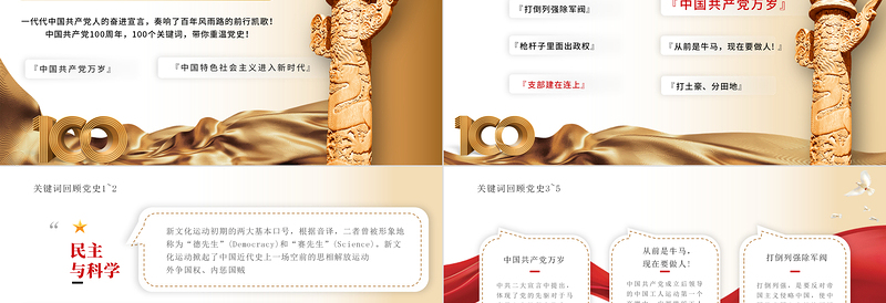 2021建黨100周年回顧百年黨史100個(gè)關(guān)鍵詞PPT模板(上) Array