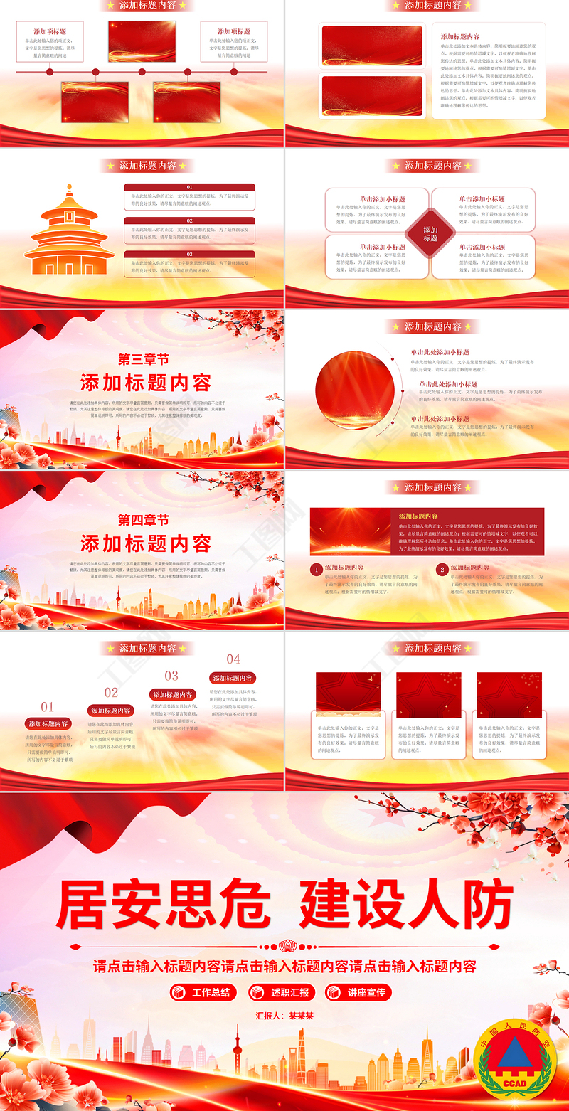 人防建設(shè)PPT紅色精美人防辦工作總結(jié)匯報(bào)模板
