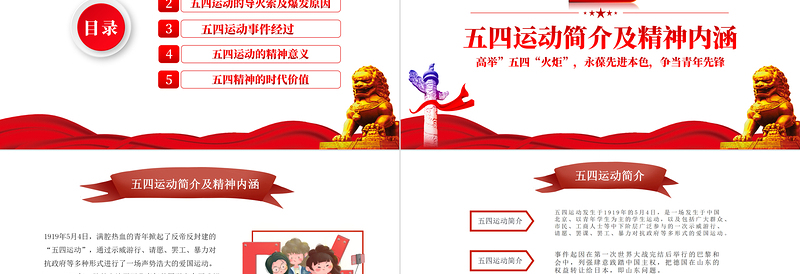 弘揚五四精神PPT高舉五四火炬永葆先進本色專題課件模板 Array