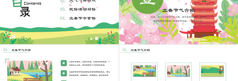 01. 立春節(jié)氣介紹02. 天氣氣候特點03. 民俗活動習俗04. 立春節(jié)令食俗
