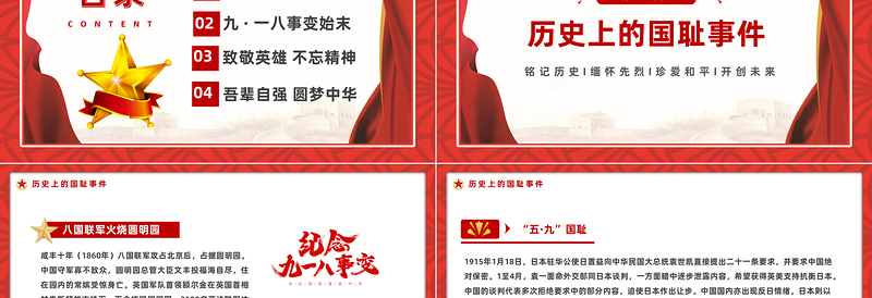 2023銘記歷史勿忘國恥九一八事變PPT紅色黨政風(fēng)吾輩自強(qiáng)圓夢中華勿忘九一八課件模板 Array
