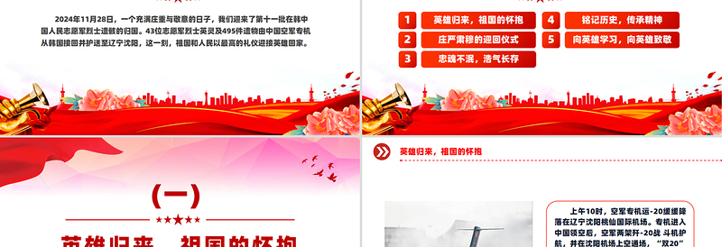 銘記歷史致敬英雄PPT志愿軍烈士遺骸歸國感悟課件模板 Array