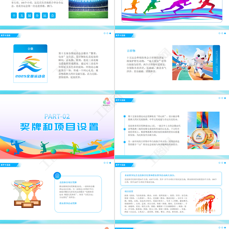 第十五屆全國運動會PPT彩色漸變十五運模板下載