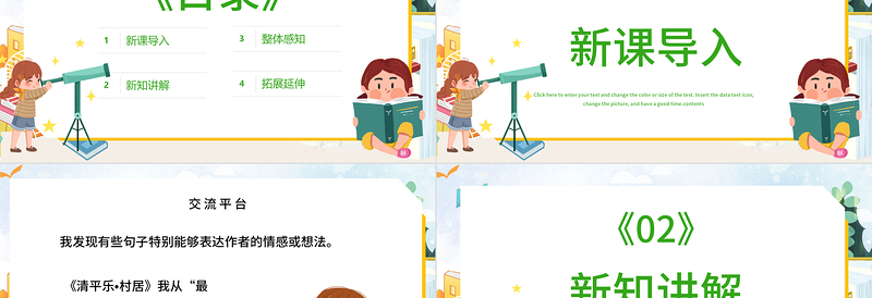 《01》新課導(dǎo)入Click here to enter your text and change the color or size of the text. Insert the data text icon, change the picture, and have a good time.contents