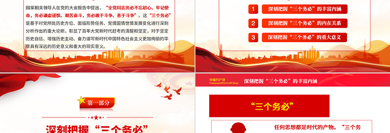 2022深刻領(lǐng)會(huì)三個(gè)務(wù)必的豐富含義PPT紅色精美風(fēng)黨員干部認(rèn)真學(xué)習(xí)貫徹大會(huì)報(bào)告精神專題黨課黨建課件模板
