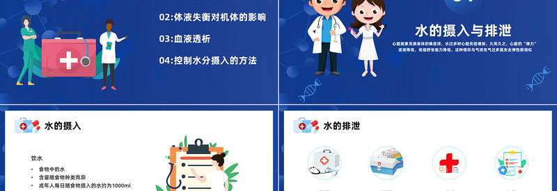 2023血液透析患者水分控制的管理PPT藍色插畫風透析患者控水宣教課件模板下載