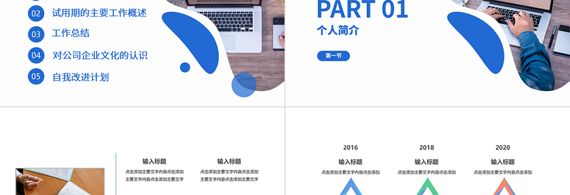 個(gè)人簡(jiǎn)介試用期的主要工作概述對(duì)公司企業(yè)文化的認(rèn)識(shí)工作總結(jié)Content自我改進(jìn)計(jì)劃